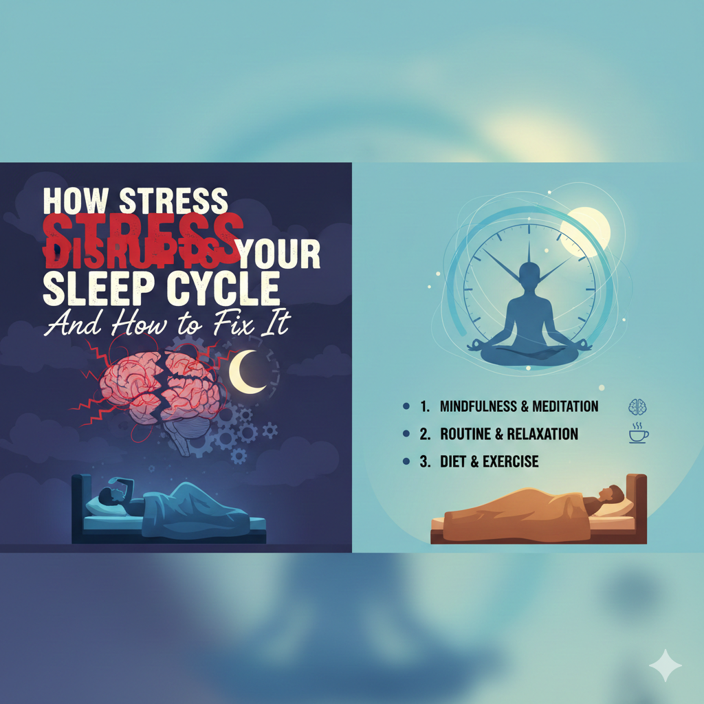 Many people blame caffeine, screens, or bedtime habits for poor sleep, yet overlook the biggest disruptor: unresolved stress. You may fall asleep quickly but wake up repeatedly, feel wired at night, or wake exhausted despite “enough” sleep. This isn’t a discipline issue—it’s a nervous system issue. This article explains how stress interferes with your sleep cycle at a biological and behavioral level, what most guides fail to explain, and how to fix the problem realistically without extreme routines.